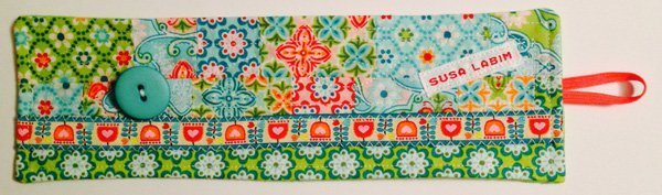 … für etwas stabilität bügele ich etwas vlieseline auf die linke stoffseite, das muss aber nicht sein… für die rückseite braucht man ein gleichgroßes rechteck (baumwollflanell ist schön kuschelig)… für den knopfverschluss ist ein gummiband komfortabel, eine dünnere kordel geht auch… einfach zur schlaufe legen, wie auf dem foto zu sehen…