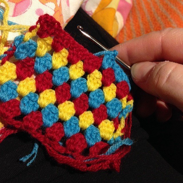 … eine minihäkeldecke brauche ich auch noch, mit dickerer wolle häkele ich solche ja (fast) allabendlich auf der couch… die lanagrossa wolle aus dem wollpaket war mir hierfür zu dick, also habe ich die fäden geteilt und nur mit einem drittel der stärke und mit 2,5er nadeln gehäkelt…