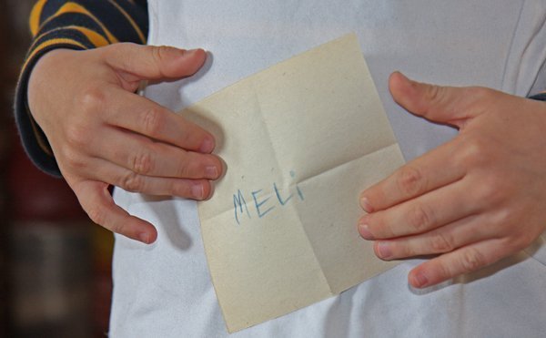 Hat der Glücks… hm.. gibt es die männliche Glücksfee? Also, ein Wort dafür? Hat der Glücksbote das ‚Meli‘ selber geschrieben?