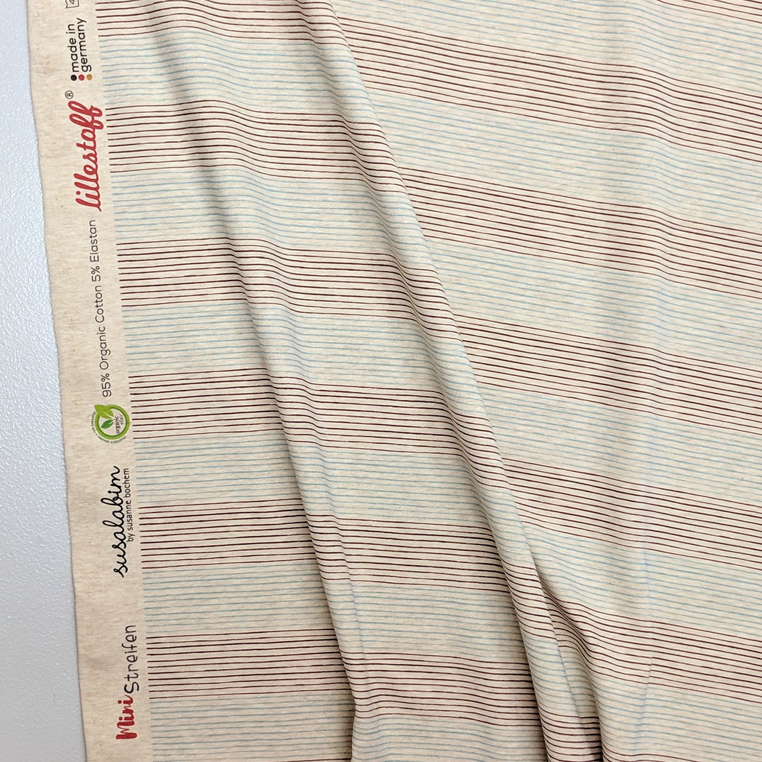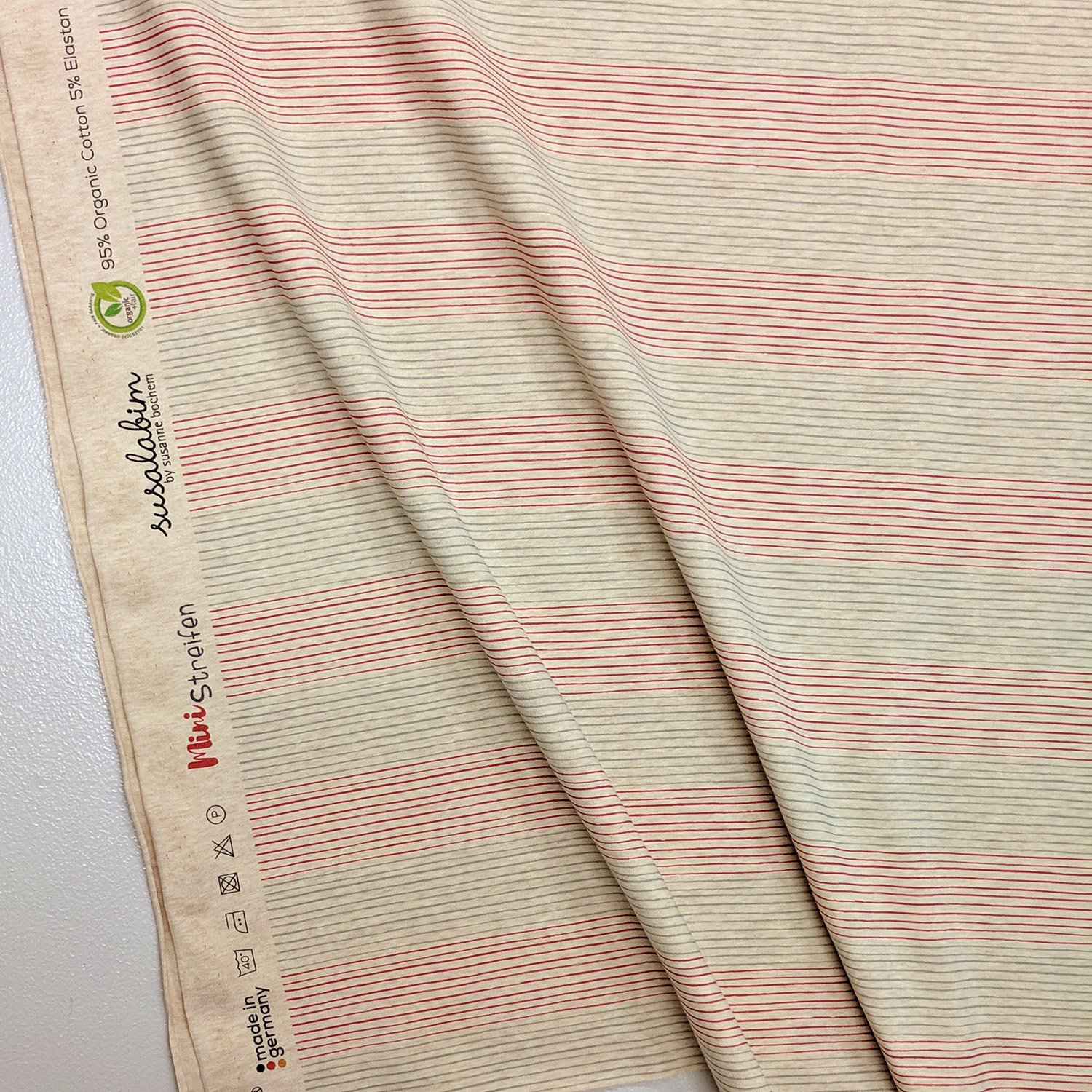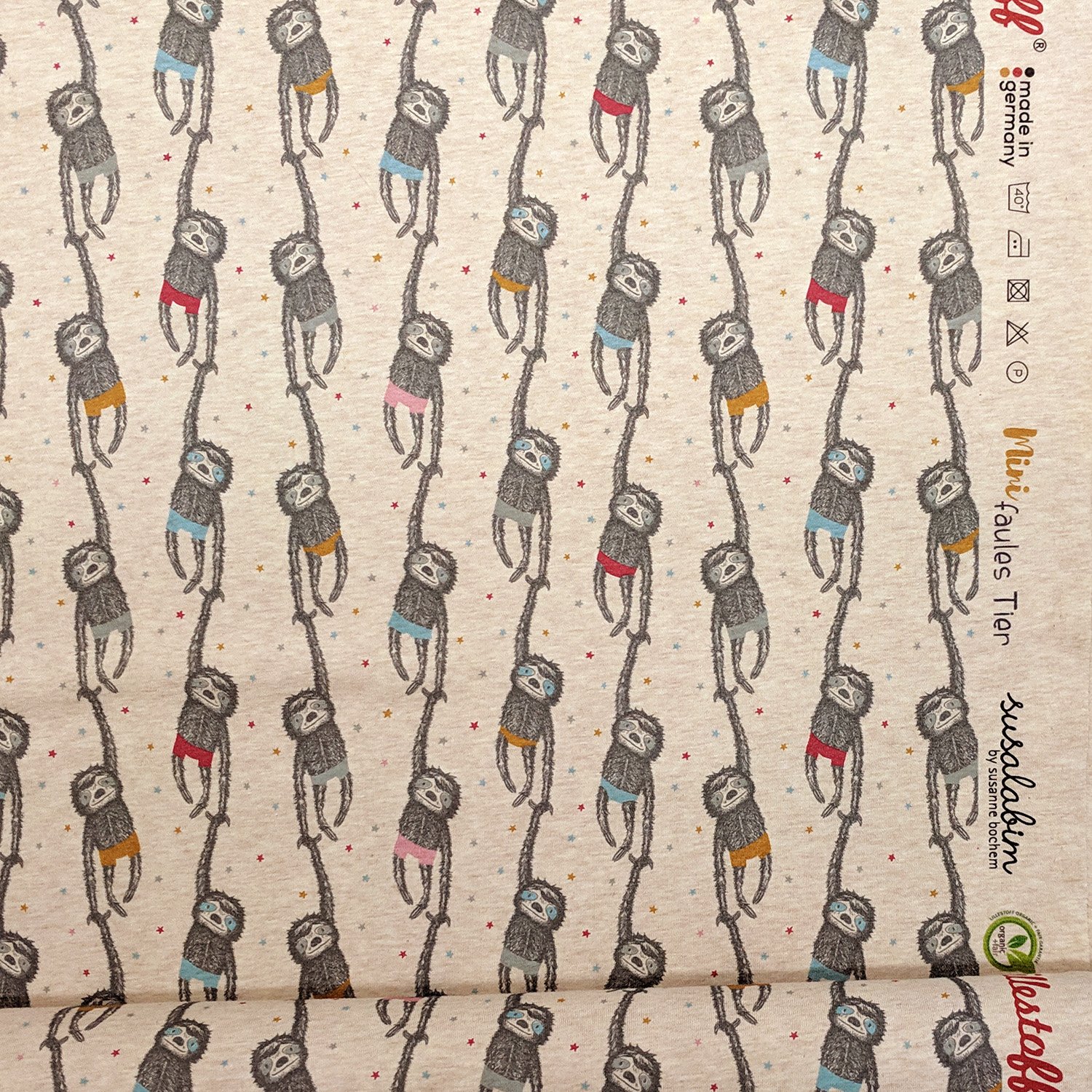 Endlich ist sie da! Die SUSAlabim Babykollektion! Sie besteht aus 9 untereinander kombinierbaren Stoffen mit kleinem Muster, die sich wunderbar für Babykleidung vernähen lassen- aber auch an größeren toll aussehen! Die Stoffe sind auf Ecrumelange (95% Bio Baumwolle, 5% Elasthan) gedruckt.