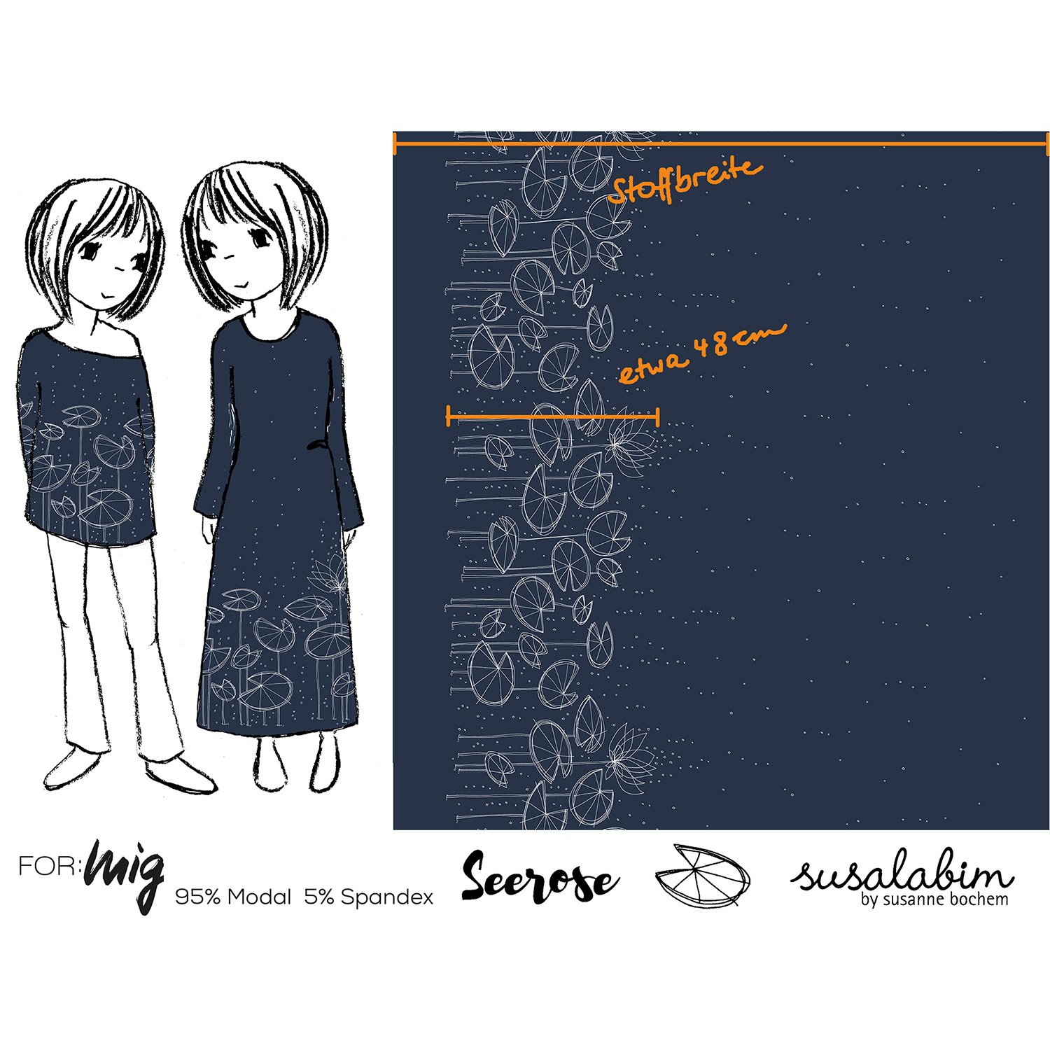 „Seerose“: mal wieder ein Modal für tolle Kleider und Shirts! Das Design wird quer gedruckt (in der Galerie seht ihr ein Bild, auf dem man die Maße sieht) und so ist man etwas flexibler wenn man z.B. ein Maxikleid nähen möchte…