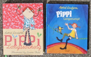 als gut gestaltetes buch zum drin-stöbern (unabhängig von der sprache und der geschichte) finde ich das von lauren child sehenswert (isbn 978-0192782403). die englische ausgabe scheint auch neu übersetzt zu sein, zumindest ist als jahr 2007 angegeben und ich kann mir nicht vorstelen, dass es vorher keine englischsprachigen pippi-bücher gab ;-)