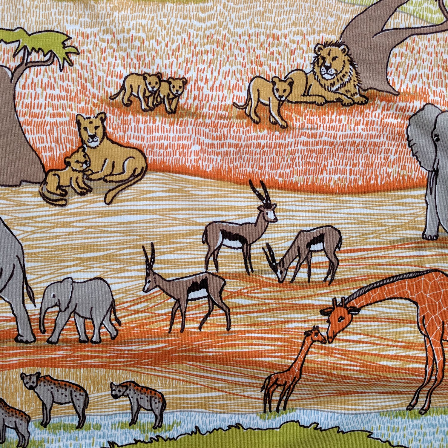 Diesmal gehen wir auf „Safari“. Der Jersey ist aus 95% Bio Baumwolle, 5% Elasthan und GOTS zertifiziert.