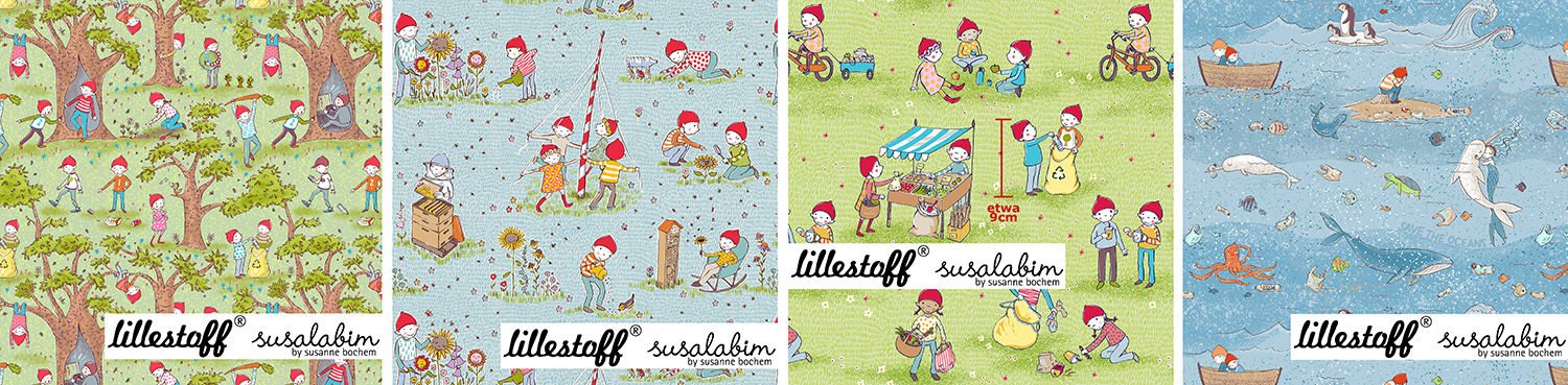 Es ging mir nicht mehr aus dem Kopf! Die ersten Skizzen entstanden und es wurden immer mehr, je länger ich über unsere Erde nachdachte… die Ozeane, der Plastikwahnsinn, Insektensterben, Kinder, die nicht mehr spielen, sondern sich nur noch digital berieseln lassen… Und so waren es am Ende 4 verschiedene Stoffdesigns! Ich habe keine Ahnung, ob das Motive sind, die man gerne auf der Kleidung trägt… sie sind kritisch und zum Teil „mit erhobenem Zeigefinger“… aber Daniele wäre nicht Lillestoff, wenn sie nicht gleich gesagt hätte „egal, das ist ein wichtiges Thema, das machen wir!“.